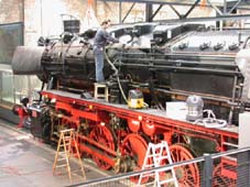 Dampflokomotive Baureihe 50 der Deutschen Reichsbahn-Gesellschaft Baujahr 1941 Besitzer: Rheinisches Industriemuseum Oberhausen (Landschaftsverband Rheinland) Ausstellungsstück in der Dauerausstellung in der Ausstellungseinheit "Drittes Reich" Durchgeführte Arbeiten: Reinigung der kompletten Oberfläche von Staub mit Industriesauger und ölhaltigen Staubbindetüchern | ||||||||||||||||||||||||||||||||||||||||||||||||||||||||||||||||||||||||